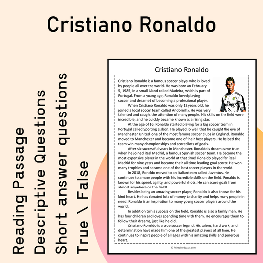 Cristiano Ronaldo | Reading Comprehension Passage Printable Activity
