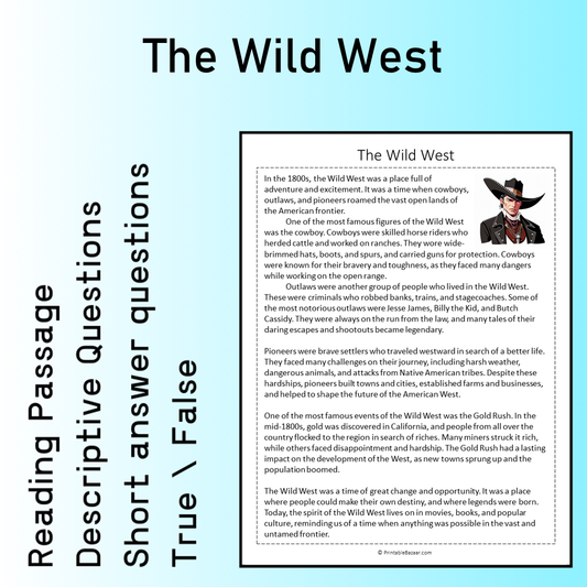 The Wild West | Reading Comprehension Passage Printable Worksheet
