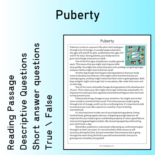Puberty | Reading Comprehension Passage Printable Worksheet