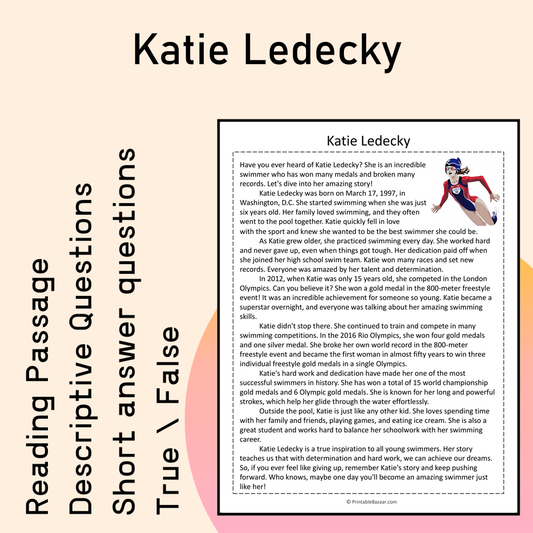 Katie Ledecky | Reading Comprehension Passage Printable Activity