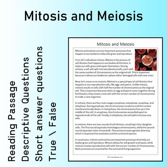 Mitosis and Meiosis | Reading Comprehension Passage Printable Worksheet