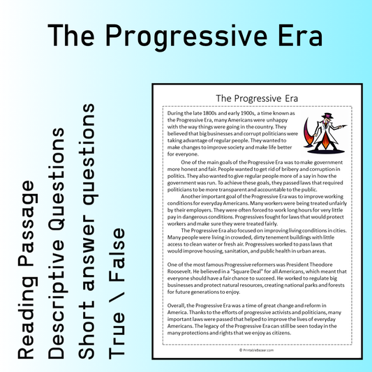 The Progressive Era | Reading Comprehension Passage Printable Worksheet