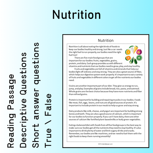 Nutrition | Reading Comprehension Passage Printable Worksheet