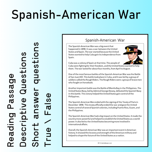 Spanish-American War | Reading Comprehension Passage Printable Worksheet