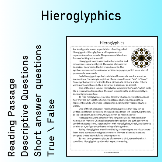 Hieroglyphics | Reading Comprehension Passage Printable Worksheet