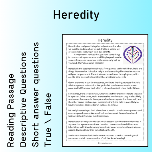 Heredity | Reading Comprehension Passage Printable Worksheet