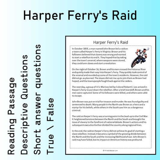 Harper Ferry's Raid | Reading Comprehension Passage Printable Worksheet