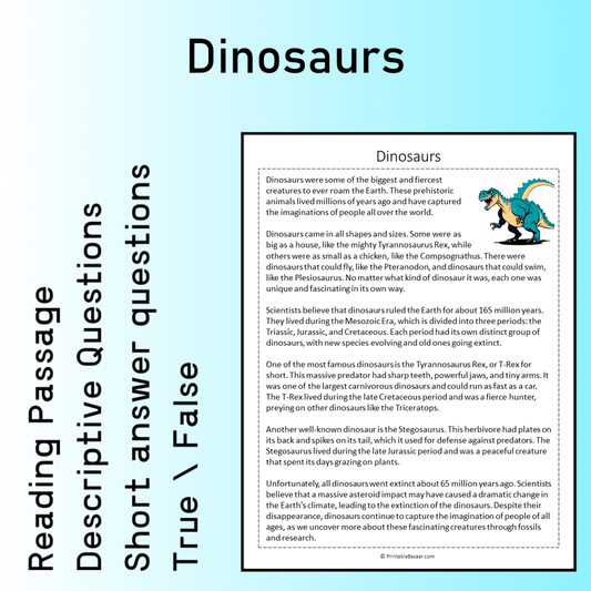Dinosaurs | Reading Comprehension Passage Printable Worksheet