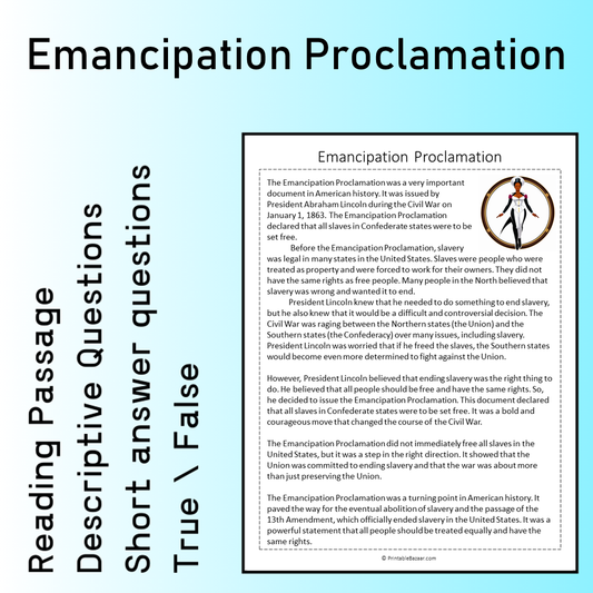 Emancipation Proclamation | Reading Comprehension Passage Printable Worksheet