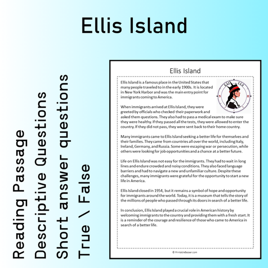 Ellis Island | Reading Comprehension Passage Printable Worksheet