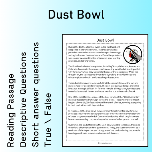 Dust Bowl | Reading Comprehension Passage Printable Worksheet