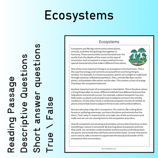 Ecosystems | Reading Comprehension Passage Printable Worksheet