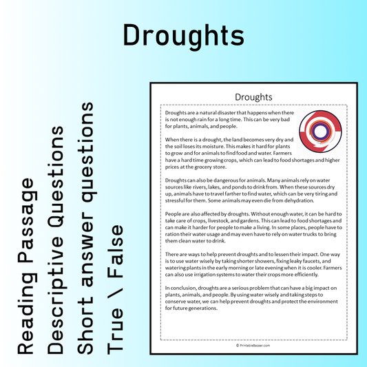 Droughts | Reading Comprehension Passage Printable Worksheet