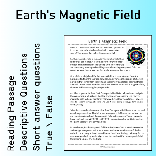 Earth's Magnetic Field | Reading Comprehension Passage Printable Worksheet