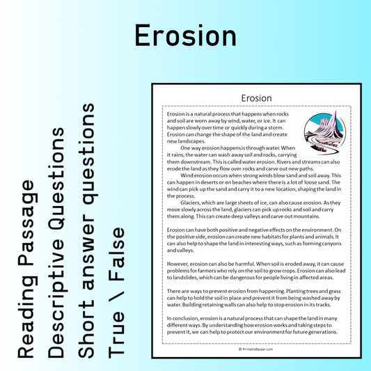Erosion | Reading Comprehension Passage Printable Worksheet