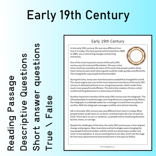Early 19th Century | Reading Comprehension Passage Printable Worksheet