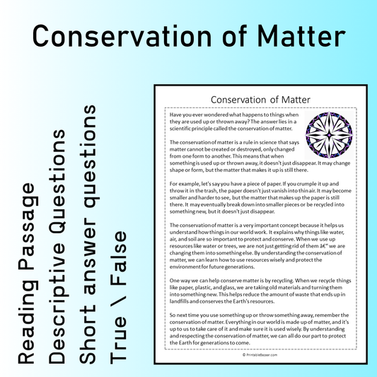 Conservation of Matter | Reading Comprehension Passage Printable Worksheet