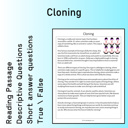 Cloning | Reading Comprehension Passage Printable Worksheet