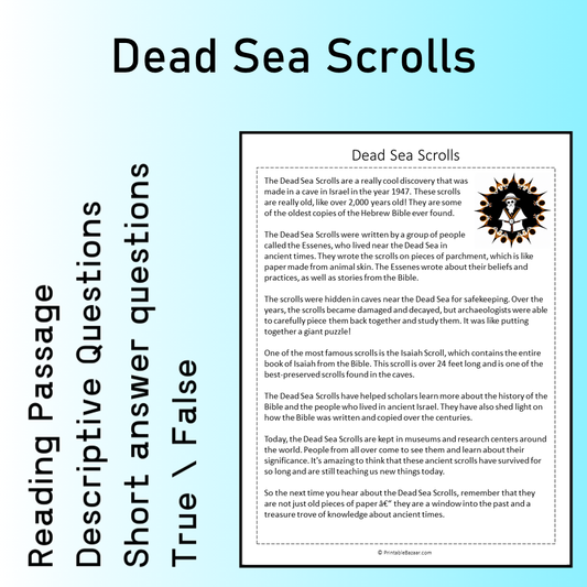 Dead Sea Scrolls | Reading Comprehension Passage Printable Worksheet