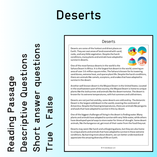 Deserts | Reading Comprehension Passage Printable Worksheet
