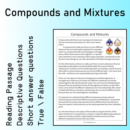 Compounds and Mixtures | Reading Comprehension Passage Printable Worksheet