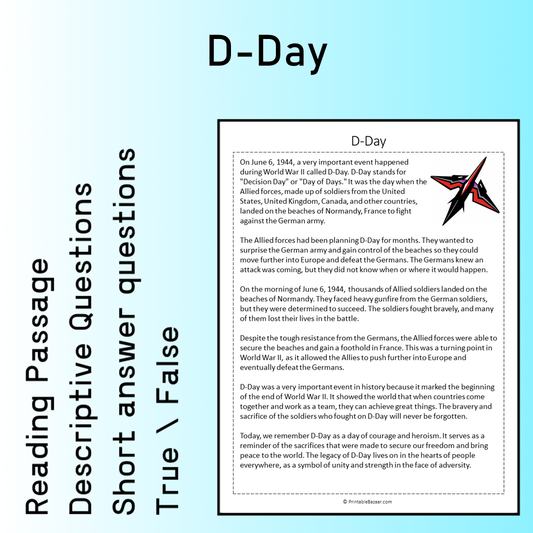 D-Day | Reading Comprehension Passage Printable Worksheet