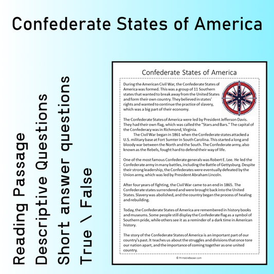 Confederate States of America | Reading Comprehension Passage Printable Worksheet