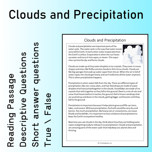 Clouds and Precipitation | Reading Comprehension Passage Printable Worksheet