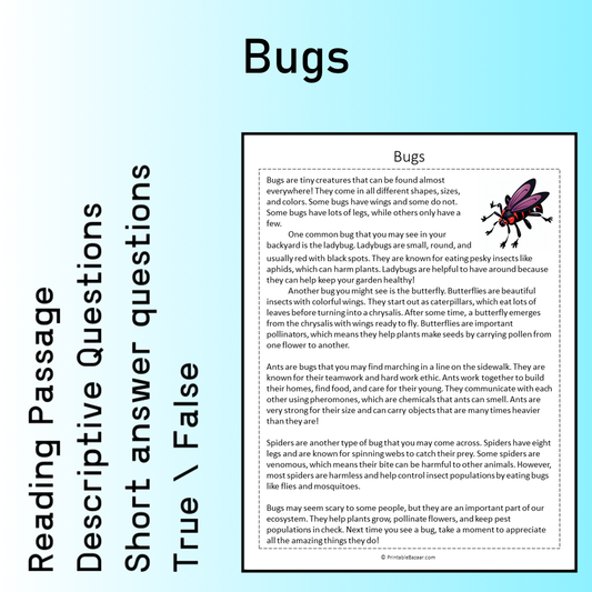 Bugs | Reading Comprehension Passage Printable Worksheet
