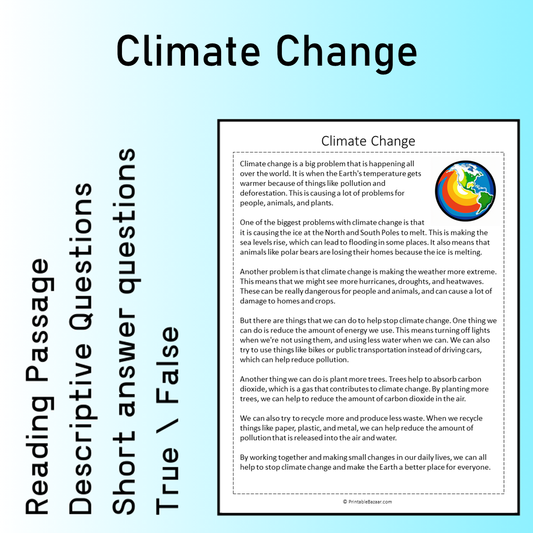 Climate Change | Reading Comprehension Passage Printable Worksheet