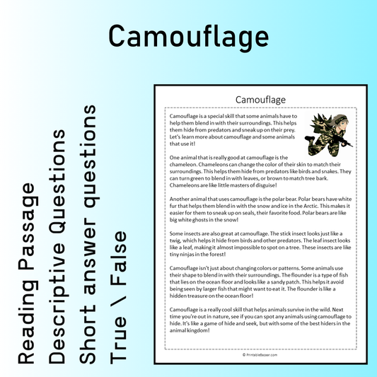Camouflage | Reading Comprehension Passage Printable Worksheet