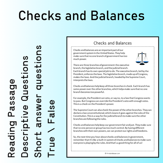 Checks and Balances | Reading Comprehension Passage Printable Worksheet
