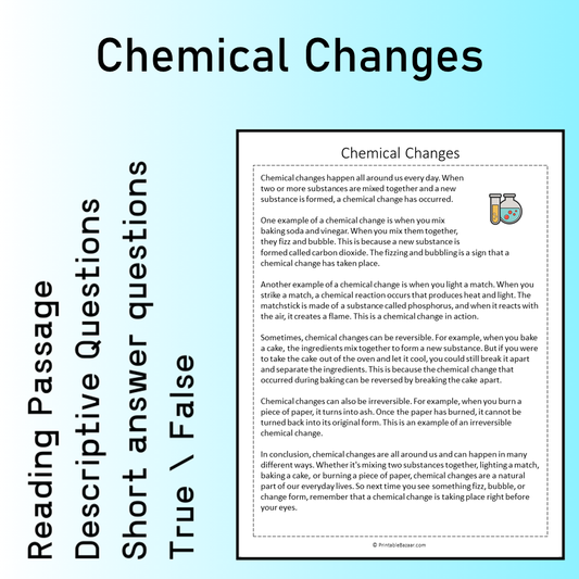 Chemical Changes | Reading Comprehension Passage Printable Worksheet