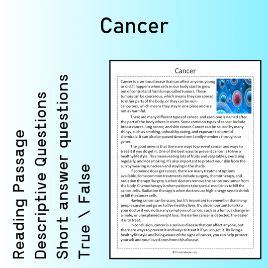 Cancer | Reading Comprehension Passage Printable Worksheet