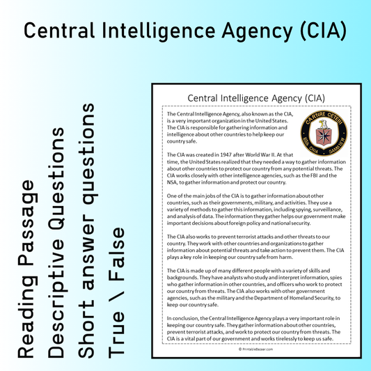 Central Intelligence Agency (CIA) | Reading Comprehension Passage Printable Worksheet