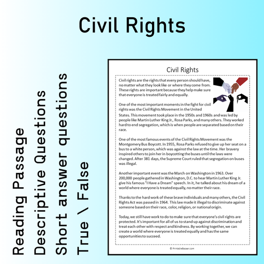 Civil Rights | Reading Comprehension Passage Printable Worksheet