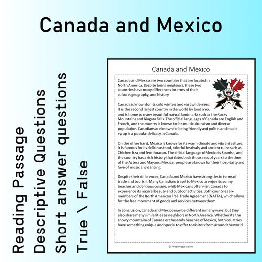 Canada and Mexico | Reading Comprehension Passage Printable Worksheet