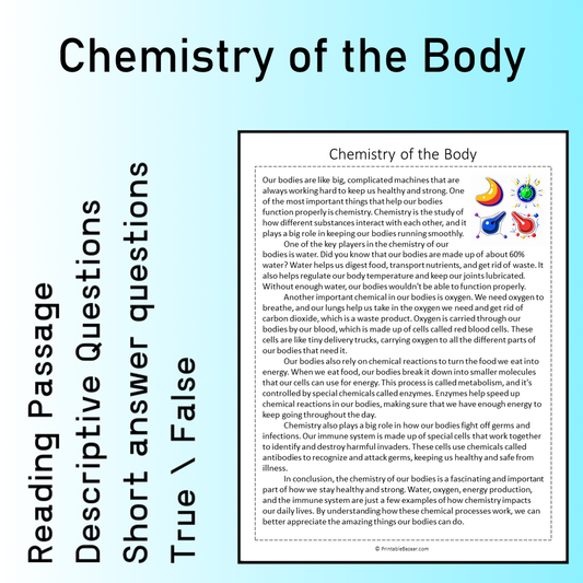 Chemistry of the Body | Reading Comprehension Passage Printable Worksheet