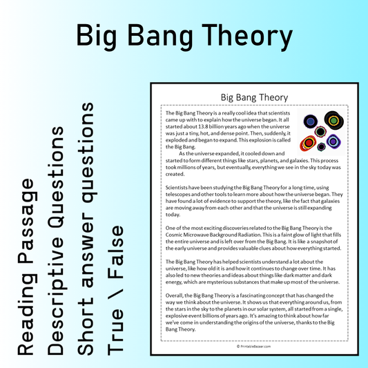 Big Bang Theory | Reading Comprehension Passage Printable Worksheet