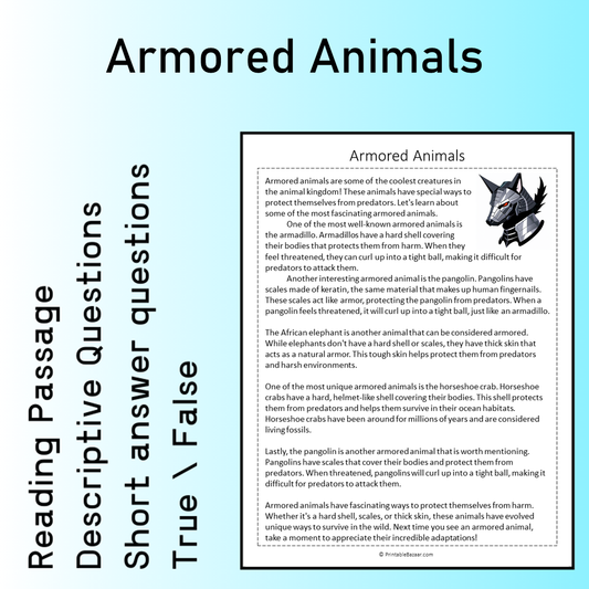 Armored Animals | Reading Comprehension Passage Printable Worksheet