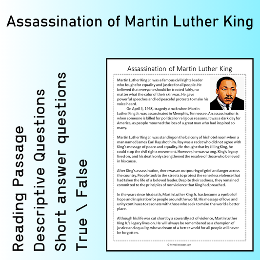 Assassination of Martin Luther King | Reading Comprehension Passage Printable Worksheet