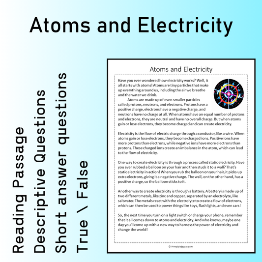 Atoms and Electricity | Reading Comprehension Passage Printable Worksheet