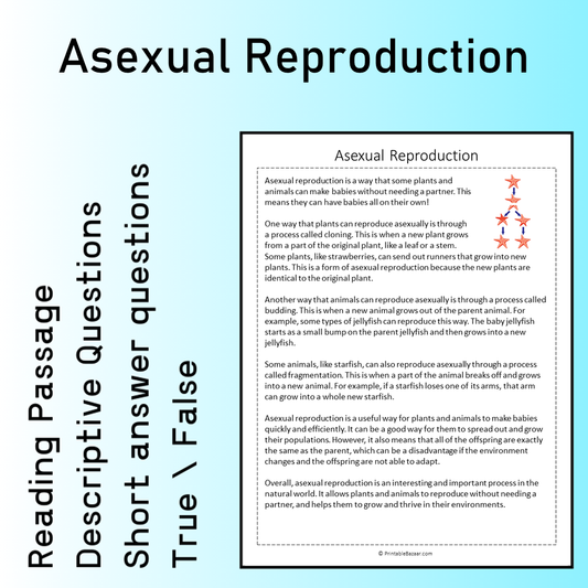 Asexual Reproduction | Reading Comprehension Passage Printable Worksheet