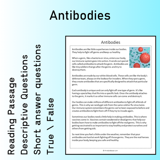 Antibodies | Reading Comprehension Passage Printable Worksheet