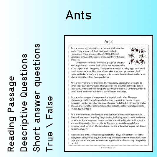 Bacteria | Reading Comprehension Passage Printable Worksheet