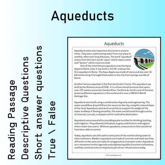 Aqueducts | Reading Comprehension Passage Printable Worksheet