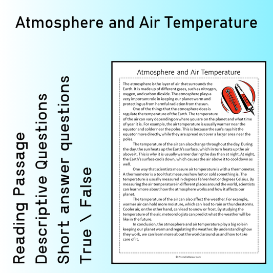 Atmosphere and Air Temperature | Reading Comprehension Passage Printable Worksheet