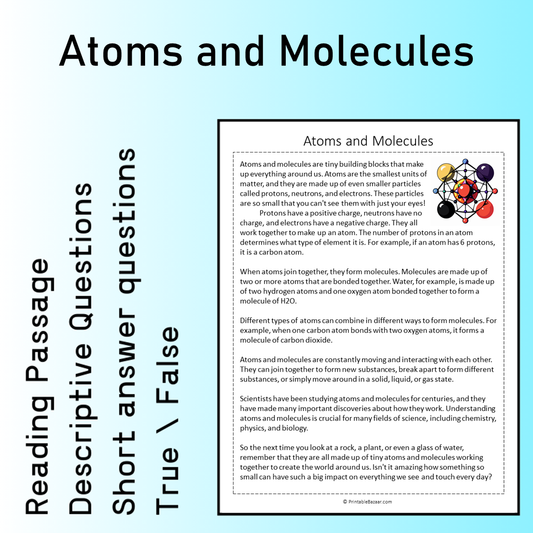 Atoms and Molecules | Reading Comprehension Passage Printable Worksheet