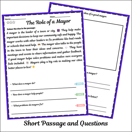 The Role of a Mayor | Short Reading Comprehension Creative Worksheet