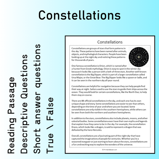 Constellations | Reading Comprehension Passage Printable Worksheet